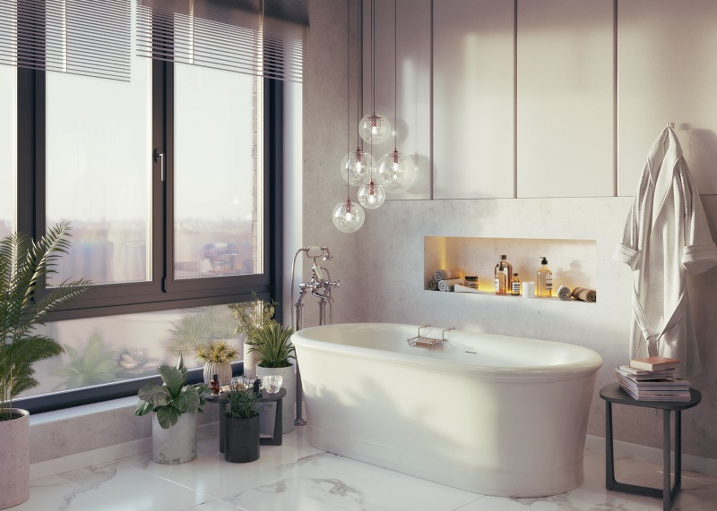 - Kết hợp rèm, kính mờ hoặc vật trang trí để giảm xung khí
